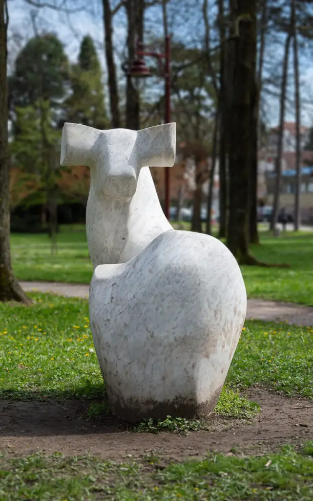 Уметник се посебно бавио темом животиња, а једно од најзначајнијих дела из те групе је „Говече“, настало на симпозијуму „Бели Венчац“ 1976. Евидентан је вајарев суптилан осећај за реализацију фигуре сведеним ликовним елементима. Идентична скулптура „Говече“, израђена исте године у ораховом дрвету, чува се у Херцег Новом. Дело постављено у парку Буковичке бање, рађено у камену, монументалних димензија, полирано је до високог сјаја, што је одлика Томановићевог вајарског рада. Сам уметник је истицао да је монументалност веома значајна за крајњи утисак који оставља скулптура у отвореном простору.