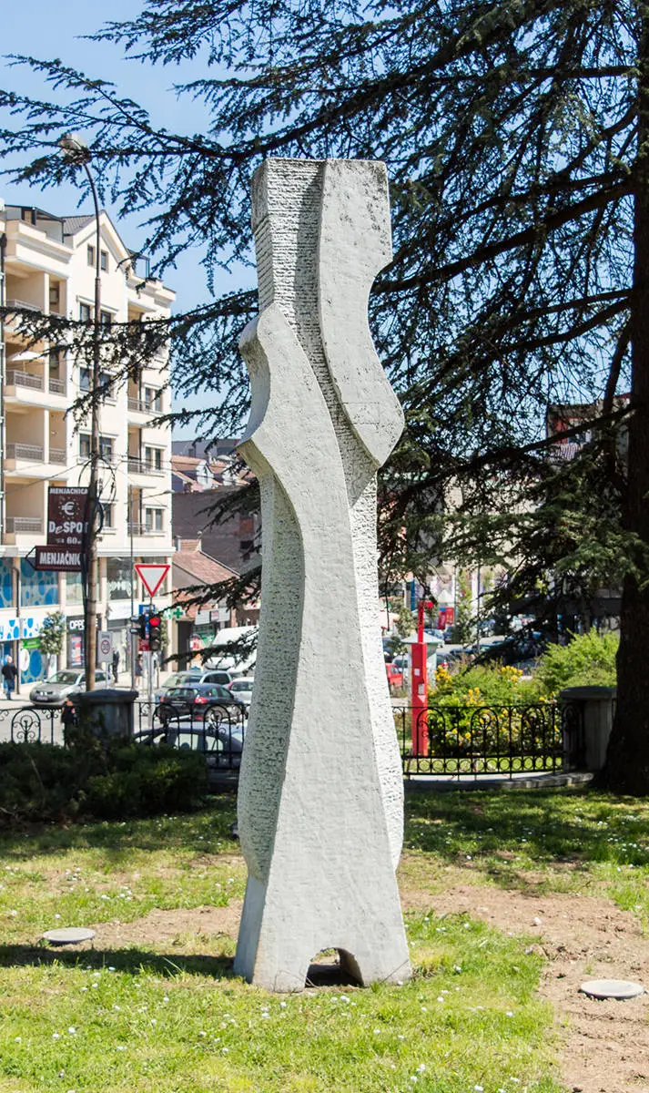 На скулптури „Обелиск I“ заступљене су геометријске апликације које разуђују монолитност облика у одређеним ритмовима, док је „Обелиск II“ боље структуриран, наглашено супротстављених робустних и глатких површина. На овом делу сегментиране површине доносе благу антропоморфну асоцијацију (на женску фигуру).