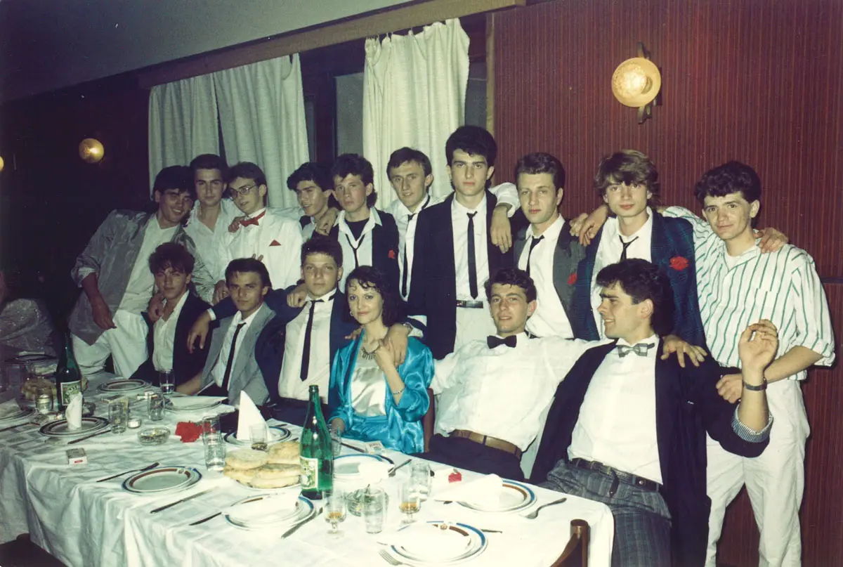 Десно: Матуранти Техничке школе из Смедерева у Старом здању, 1988.