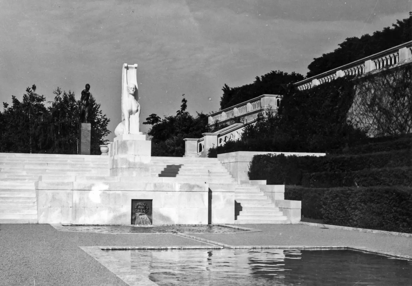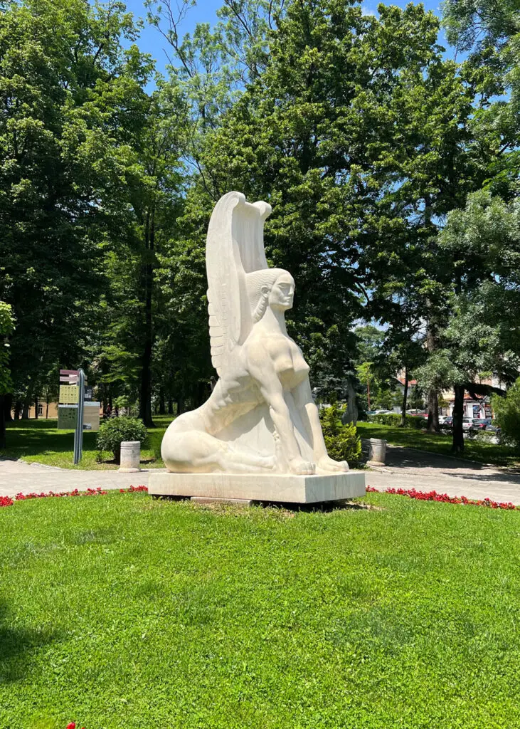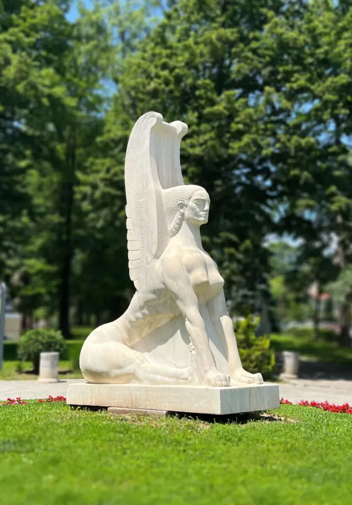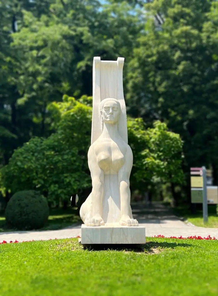 Скулптура „Сфинга“ рад је чувеног југословенског вајара Ивана Мештровића. Краљ Александар Карађорђевић је мермерну скулптуру „Сфинге“ поручио крајем 1933. године за Бели Двор у Београду. Представа митског бића са главом жене и крилима орла била је израђена од мермера порученог из Грчке. „Сфинга“ је завршена крајем 1934. године, а почетком 1935. транспортована на Бели двор.