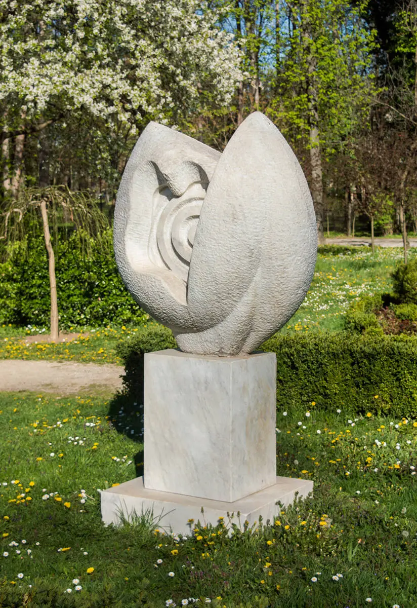 Скулптура „Шкољка“ настала је на првом сазиву симпозијума „Бели Венчац“ 1966. године. Ово дело припада посебној фази уметниковог вајарског опуса у којој сазрева модернистичка идеја о прочишћавању скулптуре. Лого ликовно уобличава супротне елементе: меко-тврдо, обло-равно, удубљено-испупчено, кроз различите мотиве. Један од таквих је и шкољка. „Ја сам је отворио да бих показао њену меку унутрашњост која се по форми супротставља чистим али тврдим спољашњим облицима“, говорио је Лого у вајарској радионици на Венчацу.